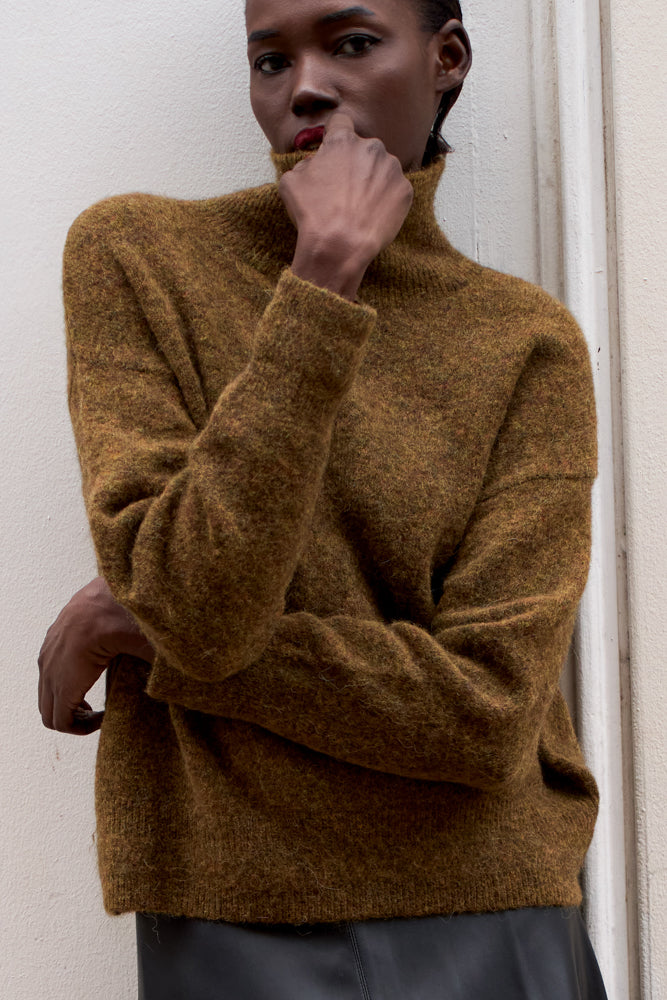 Réchauffez-vous durant l'hiver avec le pull Olivia à col roulé, douillet et chaleureux, il vous suivra et pimpera vos outfits !